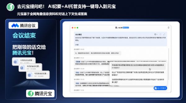 9月17日,在2025腾讯全球数字生态大会“AI协同办公与组织升级专场”上,腾讯会议给出了一个富有远见的答案。围绕“效率工具驱动组织升级”这一核心议题,腾讯会议重磅发布了AI纪要和AI托管两大创新能力,更惊喜的是AI纪要支持一键接入元宝。这些功能以一种更为智能、更具“人情味”的方式,重新定义会议的价值,让AI弥合沟通错位和信息断层,也为初创企业在激烈的市场竞争中破局,提供了一条全新的团队协作路径。