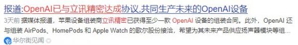 最新消息:9月19日,OpenAI 已与立讯精密达成合作,开发至少一款ToC的新型可穿戴设备,端侧AI落地进展有望迎来加速。