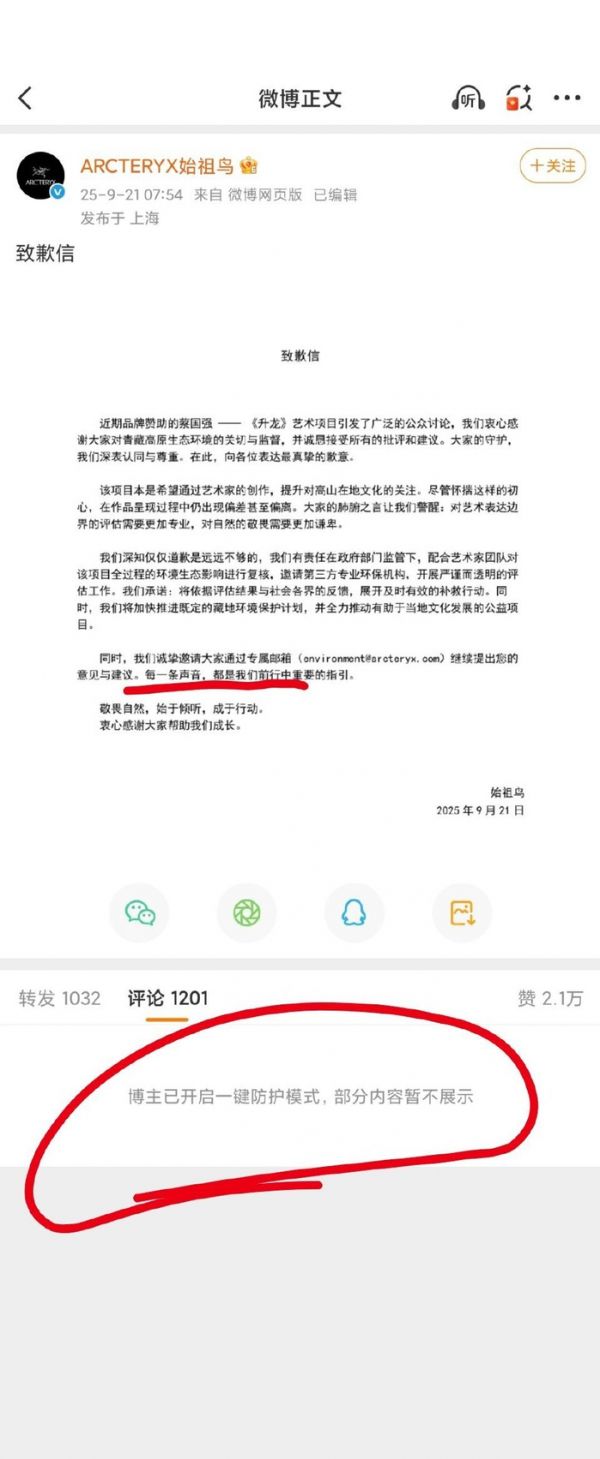 可现在,始祖鸟国内道歉,承认了错误;可海外道歉,又把责任甩给了蔡国强,甩给了国内团队,这不真诚。