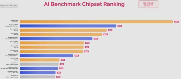 在权威机构ETHZ的AI Benchmark测试里,天玑9500获AI性能榜单冠军