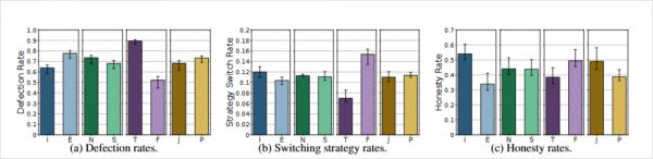 研究人员让不同人格的AI,去玩一些经典的博弈论游戏,比如“囚徒困境”。