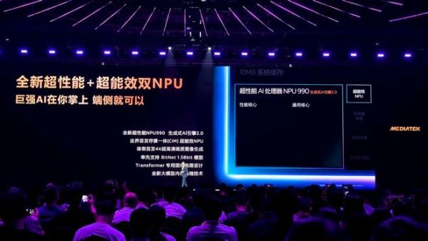 同时,NPU 990兼顾高能效,相较上一代在峰值性能下的功耗降低56%。NPU 990集成了生成式AI引擎2.0,率先支持了BitNet1.58bit大模型运算,通过减少端侧AI运算的存储需求来降低模型运行的功耗。