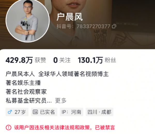 就在周鸿祎念叨流量反噬的前一天,网红户晨风被全网封杀的消息刷了屏 —— 这人把“言多必失”四个字演绎成了作死范本。