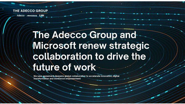 上海2025年9月25日 /美通社/ -- 近日,德科集团(The Adecco Group)(瑞士证券交易所代码:ADEN)已与微软(Microsoft)(纳斯达克证券交易所代码:MSFT)续签战略合作协议,开启为期六年的全新合作篇章。此次合作聚焦重新定义技术与人才的交汇方式,推动创新发展、数字化转型,并借助技术为人才赋能。