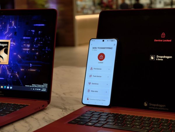 (图片来源:雷科技夏威夷现场摄制)不过最让雷科技感兴趣的,还是这套基于骁龙芯片打造的「防盗系统」,它的操作跟苹果上的「查找」功能有些相似,都是通过用户的某款智能终端设备查看其他设备的位置和状态,如果遇到特殊情况就能远程对设备进行锁定。例如笔记本电脑在国外被偷了,就能通过手机对电脑进行远程锁定,哪怕笔记本没电关机了,只要插上电源接入外部的网络,就会继续处于锁定的状态,小偷除了拆成零件卖钱外,没有任何办法。