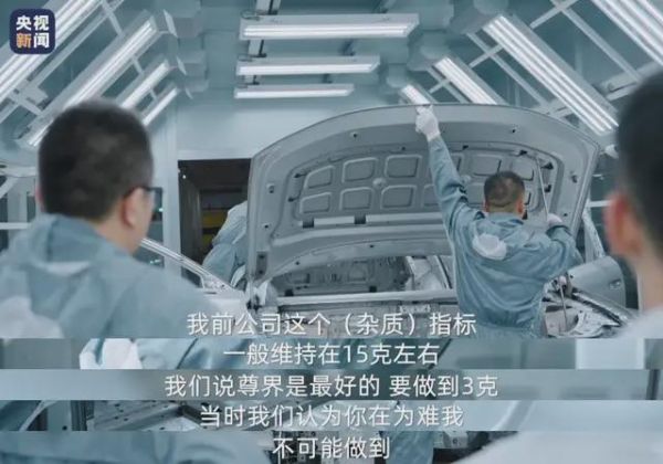 央视新闻的实地探访镜头记录了这份严苛标准下的一次现场交接考试:产线工人用四块洁净的抹布仔细擦拭由张厂长交付的白车身,争取抹下所有杂质,然后称重。结果显示,相比擦拭前,抹布仅增重 2.238 克。