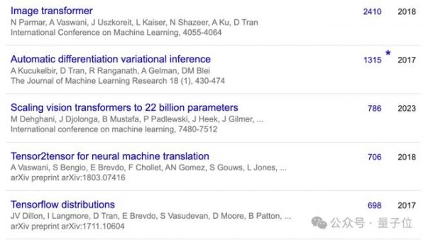 除了Gemini,Tran早期还参与了TensorFlow、Tensor2Tensor、Image Transformer、Vision Transformer等多个重量级项目,这些论文在谷歌学术上都有不错的影响力。