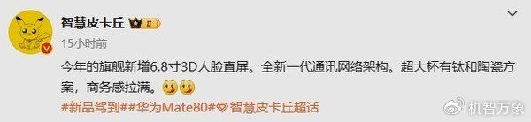 其实,近日数码博主“智慧皮卡丘”也曾爆料称,华为Mate 80系列将推出新增的6.8英寸支持3D人脸识别的直屏版,并采用全新一代通讯网络架构。其中,超大杯机型(预计为Mate 80 RS非凡大师)将提供钛金属中框和陶瓷后盖方案,进一步提升高端商务质感。众所周知,钛金属中框与玄武架构结合,可以在增强抗摔性的同时显著降低机身重量,而纳米陶瓷工艺后盖可呈现动态变色效果,融合科技感与艺术设计。