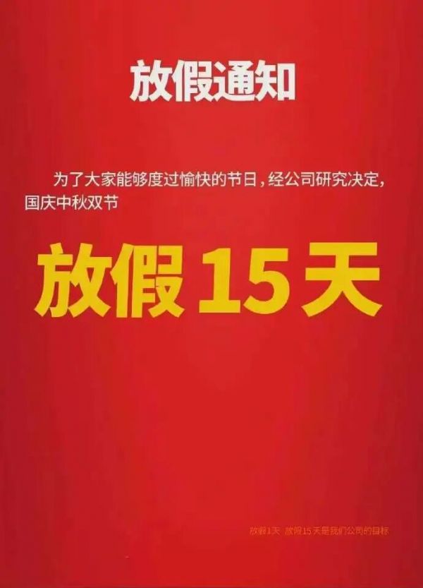 最后,告诉大家一个好消息,我们公司国庆放假15天!(⚠️注意小字)