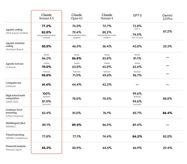 金融、法律、医学和 STEM 领域的专家发现,与包括 Opus 4.1 在内的旧模型相比,Sonnet 4.5 表现出了更出色的领域特定知识和推理能力。