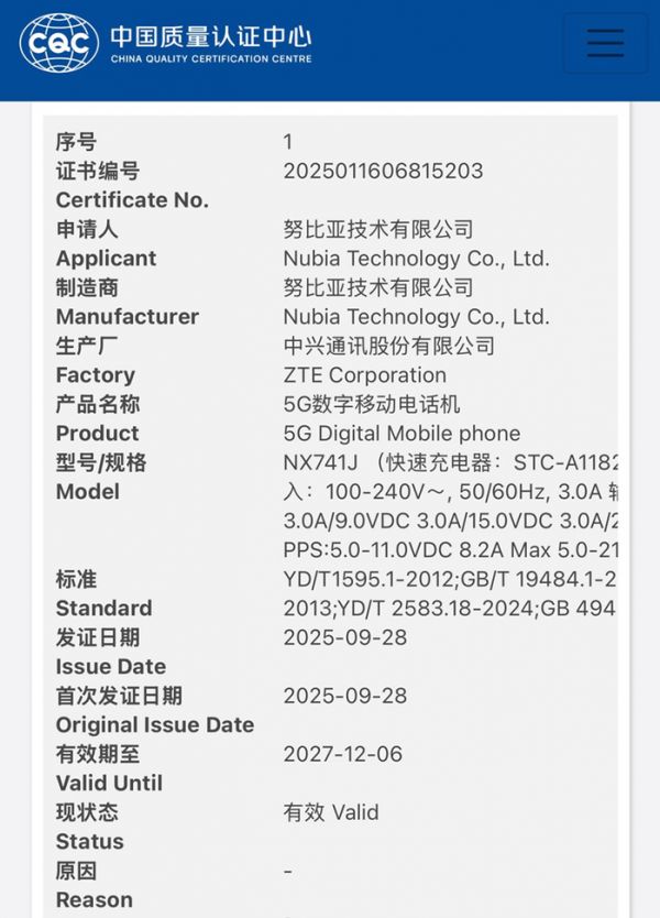 努比亚Z50S Pro入网 骁龙8旗舰 80W快充