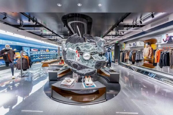 这家门店,是索康尼华东首家月球概念店,其设计灵感,来自1965年宇航员穿着索康尼鞋首次“太空漫步”。