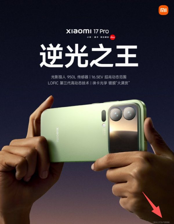 这事的导火索,是小米 17 Pro 的宣传海报。海报正中央用鎏金大字写出“逆光之王”,搭配徕卡影像系统的宣传图,视觉冲击力直接拉满。可有人把图片放大三倍才发现,右下角藏着一行浅灰色小字:“逆光之王是产品设计目标”。