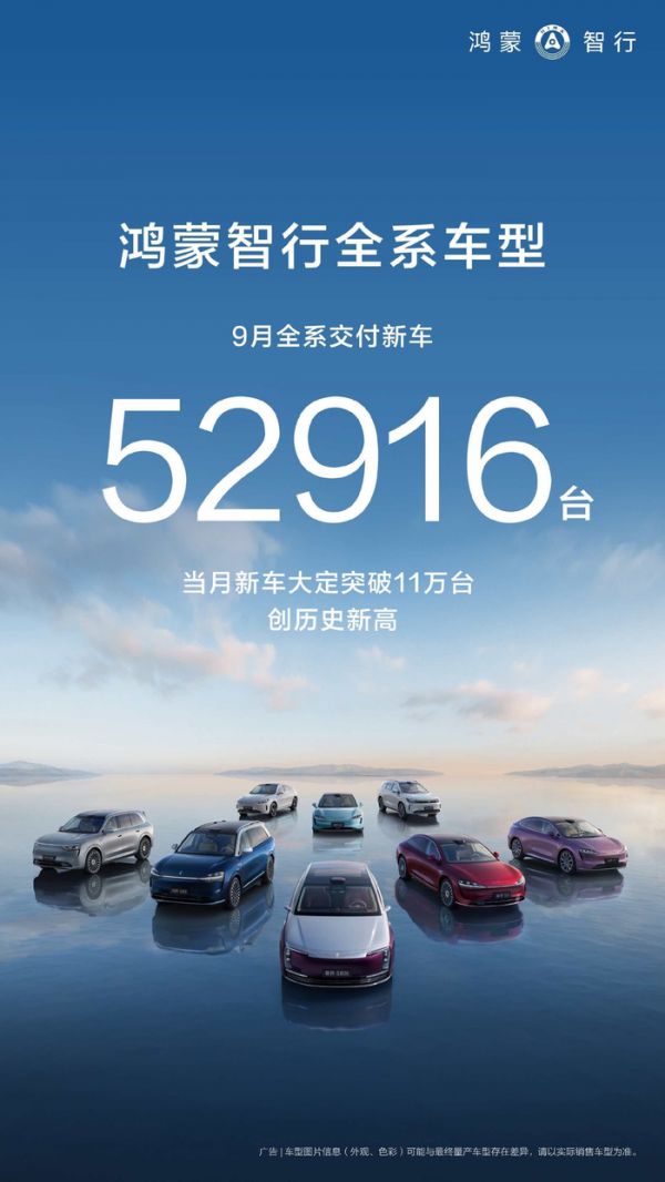 鸿蒙智行9月交付稳增,岚图突破1.5万辆,零跑持续热销