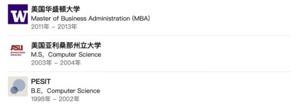 Rahul Patil 本科毕业于 PESIT(印度班加罗尔的一所知名私立工程学院),硕士毕业于美国亚利桑那州立大学,并获得了华盛顿大学的 MBA。