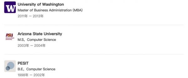 2002年,Rahul Patil获得了PESIT的计算机科学工学学士学位;他还拥有亚利桑那州立大学计算机科学硕士、华盛顿大学工商管理硕士(MBA)学位。