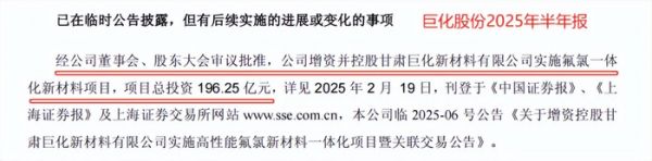 就在2025年2月,巨化股份通过增资实现了对甘肃巨化的控股,并且启动了高性能氟氯新材料一体化项目,由甘肃巨化实施。