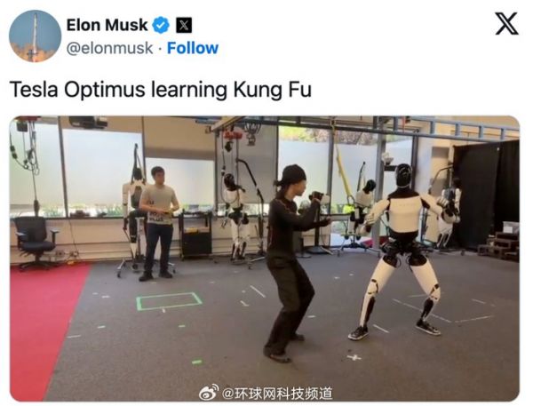 马斯克晒人形机器人练功夫