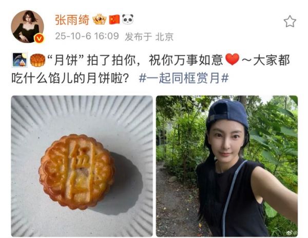 #张雨绮溢出屏幕的生活感# 中秋晒月饼配林间自拍也太戳人了!镜头里没有刻意精致,只有不紧绷的松弛状态,每帧都透着沉淀后的笃定。这哪是晒日常,明明是把“松弛感教科书”搬进生活,隔着屏幕都能接住那份自在惬意~