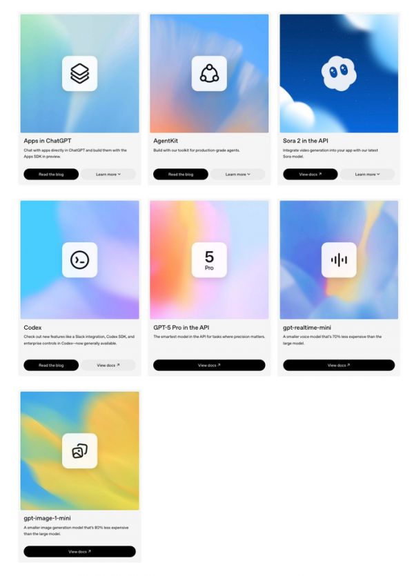 此外,Sora 2、GPT-5 Pro、gpt-realtime-mini、gpt-image-1-mini等最新模型也正式向开发者提供。