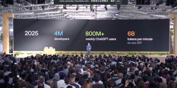 蓝鲸新闻10月7日讯(记者 武静静)2025年10月6日,OpenAI在旧金山举行其第三届 DevDay 年度大会。宣布了四大重磅的更新,同时公布了关键的一些产品数据值得关注。