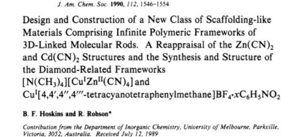 [7]Robson, R. (2024). The historical development of the concepts underlying the design and construction of targeted coordination polymers/MOFs: a personal account. The Chemical Record, 24(5), e202400038.