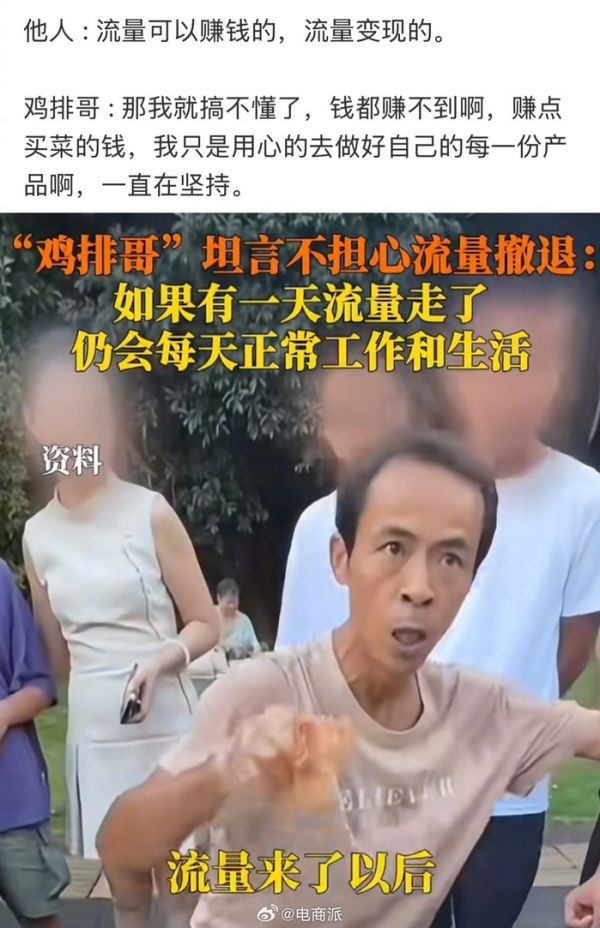 鸡排哥谈流量焦虑,自己不搞流量只赚些买菜钱。