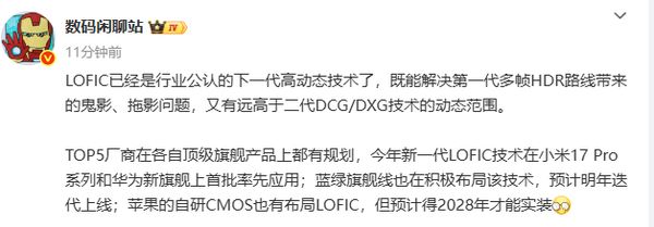 据悉,国内TOP5手机厂商均已在各自顶级旗舰产品规划中纳入LOFIC技术路线。其中,华为即将发布的新款旗舰手机也将采用该技术,进一步强化其影像系统竞争力。而vivo与OPPO虽尚未在当前旗舰机型中应用,但已积极布局相关方案,预计将在2026年的迭代产品中实现上线。供应链消息指出,随着CMOS传感器厂商加快技术迭代,LOFIC的量产成本正逐步下降,为更广泛的应用铺平道路。