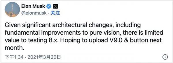 2021年7月,特斯拉FSD Beta V9.0面向美国用户开启小范围推送,这比原定时间晚了整整三个月。