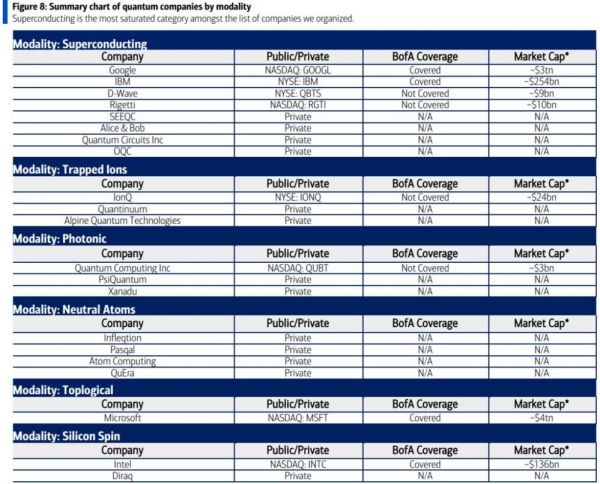 图:量子计算行业主要公司清单,BofA,AlphaEngine