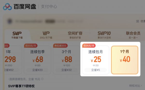 买会员时,阿蛇又经过了一番计算:是充一个月的 SVIP,还是买个下载券,买多久又才是最划算的?