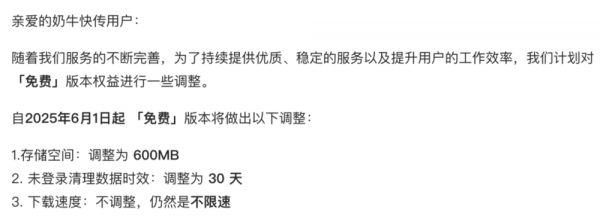 2 年内,奶牛快传的免费额度也迎来了两次调整:
