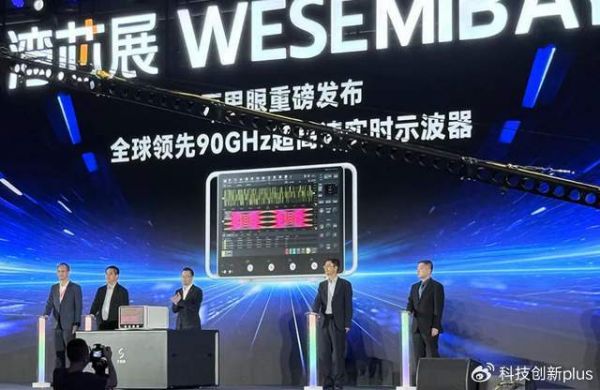 第二个惊喜则是新凯来旗下另外一家子公司深圳市万里眼技术有限公司,全球首发了自主研发的新一代超高速实时示波器,这个示波器带宽突破了90GHz,较之其它国产示波器性能提升了500%,其性能排在了全球第二了。
