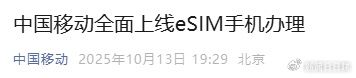 就在10月13日,中国联通、中国移动、中国电信接连宣布:正式获批开展eSIM手机运营服务商用试验!