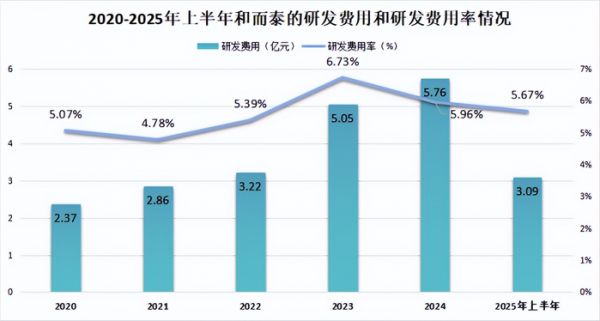 为此和而泰大手笔追加研发,2025年上半年的研发费用同比增长了17.05%到3.09亿元,研发费用率也有5.67%。