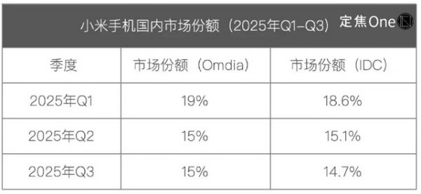 小米是今年份额变化最大的厂商,从第一季度的19%到第三季度的15%,排名从第一跌至第四。