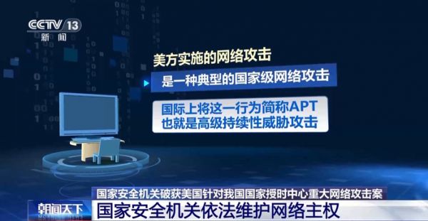 专家介绍,美方实施的网络攻击是一种典型的国家级网络攻击,国际上将这一行为简称APT,也就是高级持续性威胁攻击。