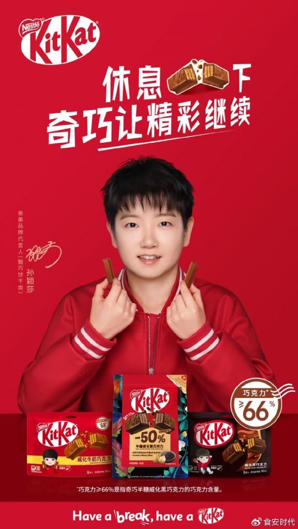 孙颖莎“升级”成为雀巢品牌代言人(糖巧饼干类)