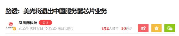 就在10月17日,路透社透露,美国芯片巨头美光科技计划退出中国数据中心服务器芯片业务。