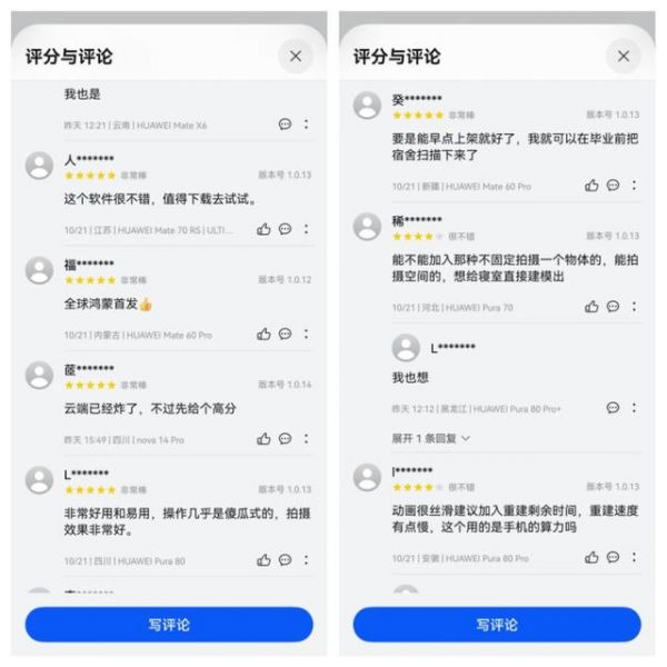 而这款应用的评论区也彻底沸腾了,有用户惊叹“鸿蒙系统就该有这种创新APP”,有刚毕业的大学生朋友遗憾“要是能早点上架,我就把宿舍扫下来了”。这种能360度查看、能放大缩小、甚至能用第一人称视角探索的“沉浸空间”,让“晒图”这件事瞬间升维了。