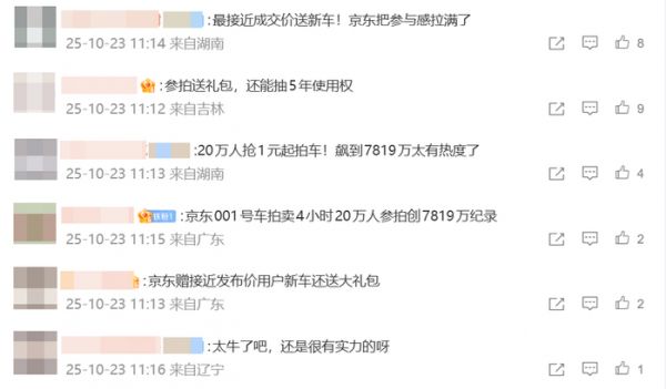 京东汽车“赠车”“赠大礼包”的慷慨之举,获得了大量网友的点赞,网友纷纷表示“参与感拉满”“有实力”。
