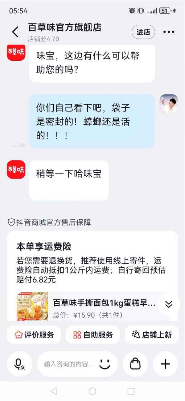 消费者称袋装面包里有活蟑螂,有网友表示质疑,品牌方:已联系对方寄回调查