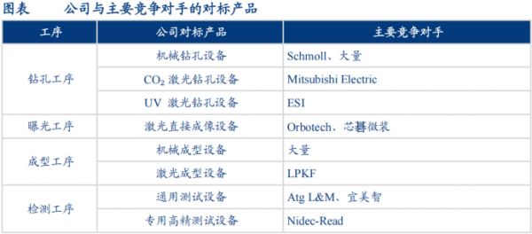 同行对比看,国内芯碁微装PCB激光直写成像MAS4设备最小线宽可达3-4μm,国外,Nidec-Read、LPKF等竞争力不小。