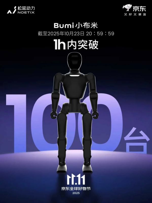 值得一提的是,10月23日晚8点,松延动力的“Bumi小布米”人形机器人悄然上架,定价9998元。