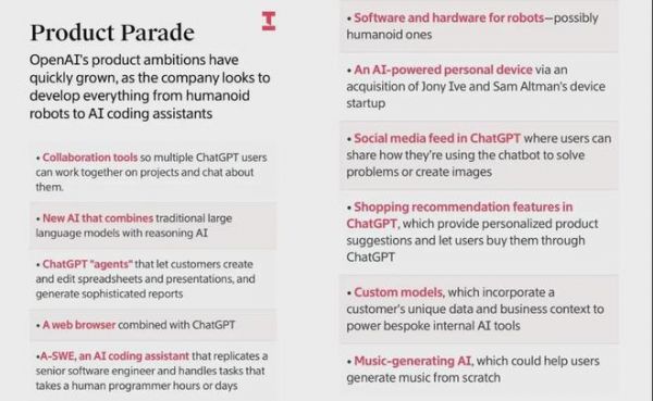 在表格中,他列举了OpenAI正在开发的一系列产品: