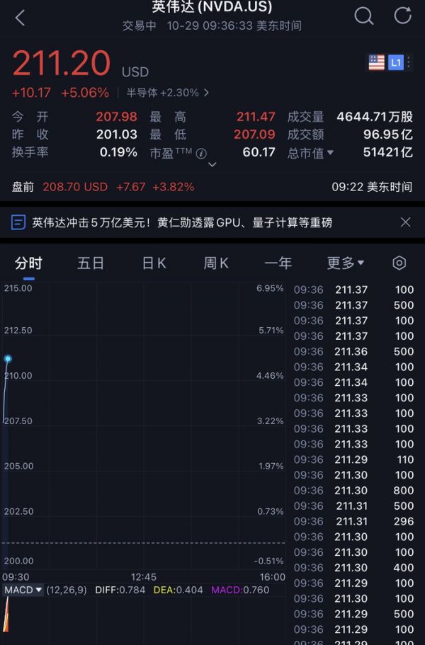 智东西10月29日报道,刚刚,英伟达市值正式突破5万亿美元大关!这标志全球股市的新里程碑——我们见证了史上第一家5万亿美元上市公司的诞生。