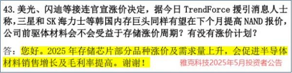 可以说,雅克科技一只手握着HBM芯片制造环节的关键材料(前驱体),另一只手握着其封装环节的必需材料(硅微粉),稳稳地站在了AI存储革命的风口上。2025年以来持续的存储芯片涨价潮,无疑将进一步推动公司半导体材料的销售额和毛利率双双提升。