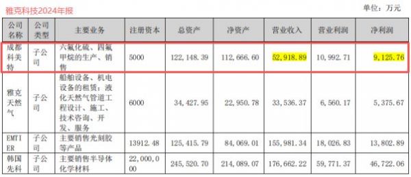 2024年实现营收5.29亿元,净利润0.91亿元,其核心产品六氟化硫和四氟甲烷的产能利用率达到100%,经营状况非常健康。