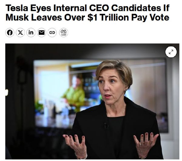 不过这一警告似乎并没有动摇特斯拉股东的选择。10月29日,有媒体透露,特斯拉计划从内部任命新CEO,首选方案为提拔现有高管。