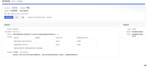 近几日,该家电品牌因叠加抖音平台券后价格低于京东,被京东以“价格违规”为由开出500万元罚单。根据新消费日报记者获取的一份罚单,上面显示:“商家所设置的商品价格明显高于统一时间段平台内或者其他渠道的同款商品价格。”